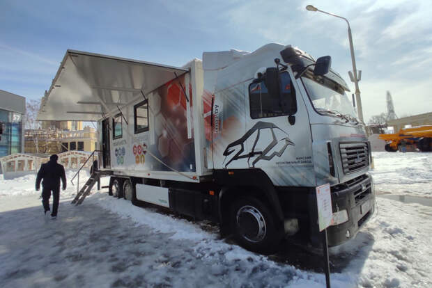 Этот автомобиль на выставке техники на ВДНХ выглядел неприметно: обычный МАЗ с «будкой» — что в нем интересного? Но стоило обойти машину с другой стороны, как стало понятно, что этот кузов не предназначен для перевозки грузов. Перед нами — мобильный офис производства придворного мазовского ателье Купава.